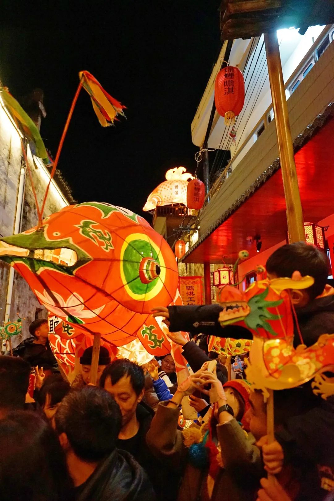 自2008年入选黄山市非遗名录,瞻淇鱼灯在传承中不断创新。正如村中老手艺人所说:“鱼灯要游在古巷里,也要游进年轻人的心里。”扎灯人将金箔细细贴上鱼鳍,灯光透过宣纸,在他布满沟壑的面庞投下温暖的光晕——那是文明的火种,在千年瞻淇生生不息。