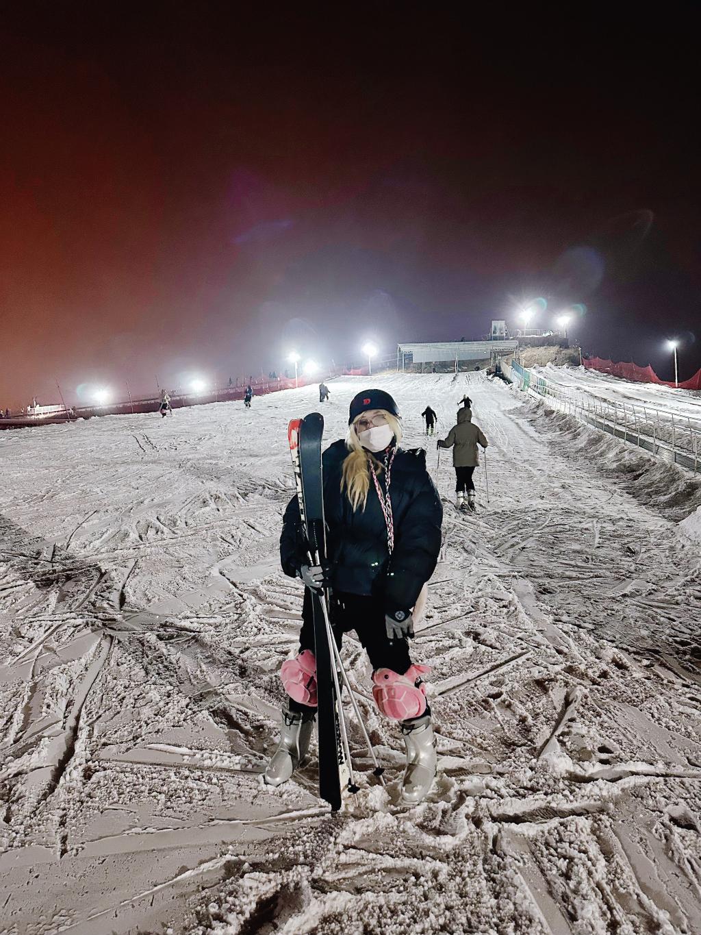 洪莹莹体验滑雪