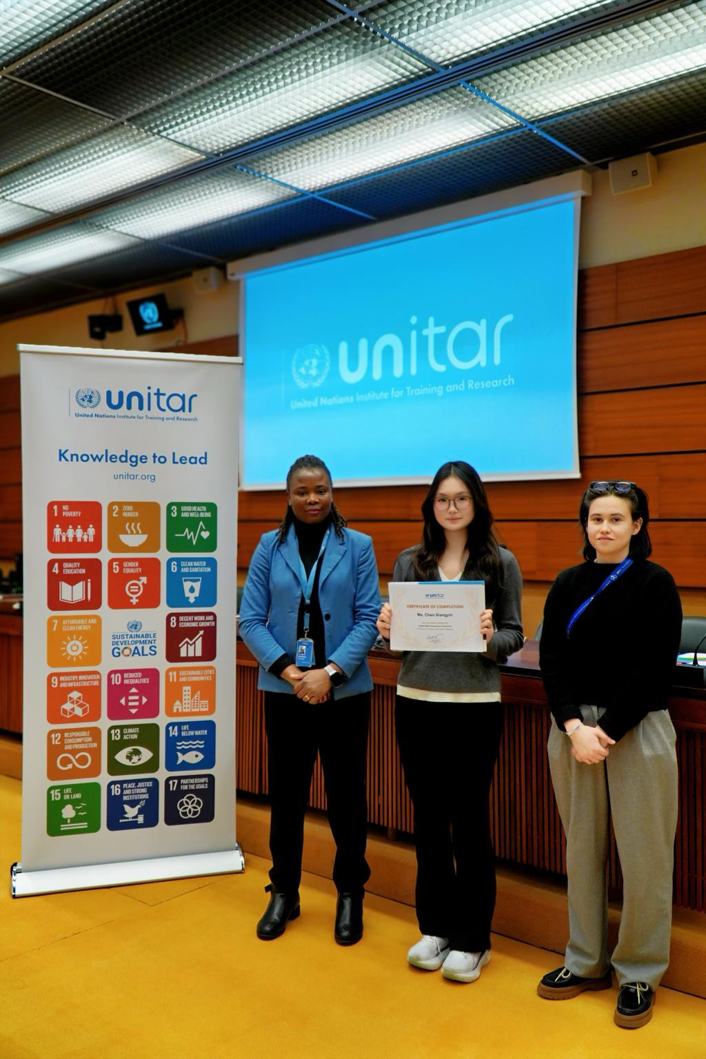 陈相因获得联合国研学结业证书