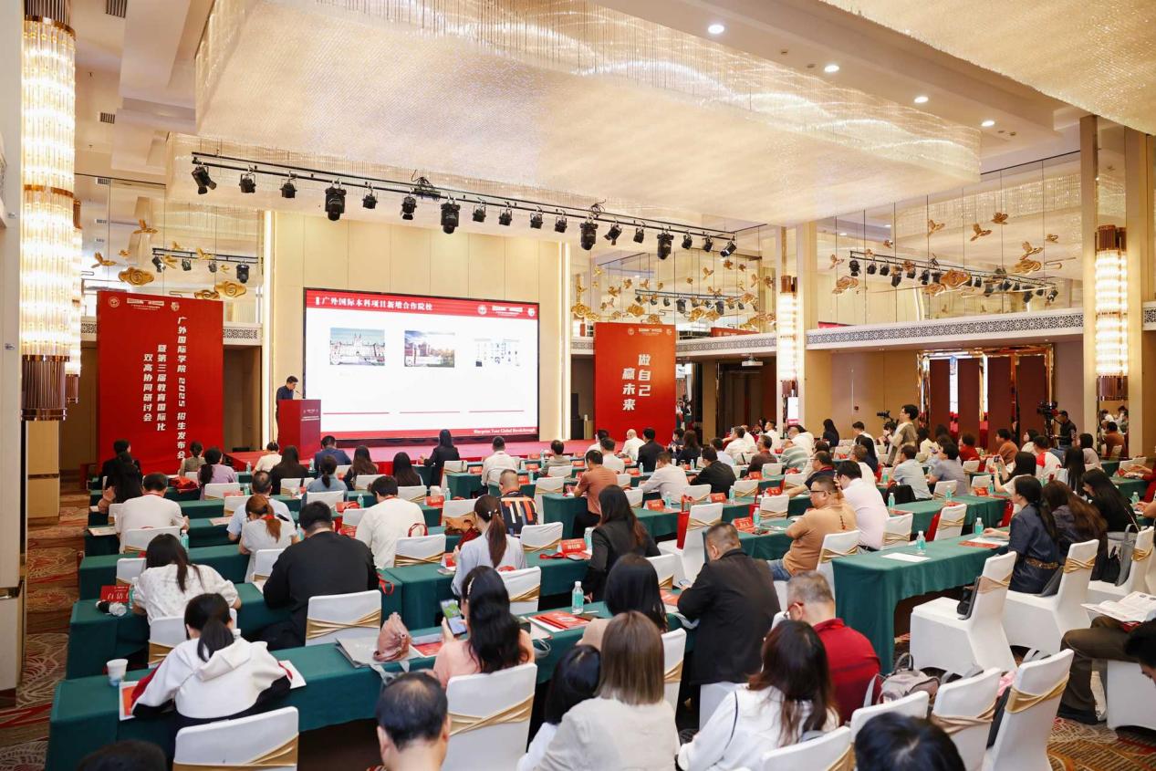 本网讯 4月19日,广外国际本科2+2项目招生发布会在我校国际学术交流中心举行。全国42所生源地中学代表、考生和家长等近140人参会,共同探讨国际化升学路径。广外2+2国际本科项目由中国(教育部)留学服务中心官方认证,面向应往届高中毕业生招生,采取计划外招生模式,无需填报高考志愿。该项目合作院校均为教育部认证的海外高校,专业覆盖商科、传媒、计算机(AI)、艺术设计和体育管理等。