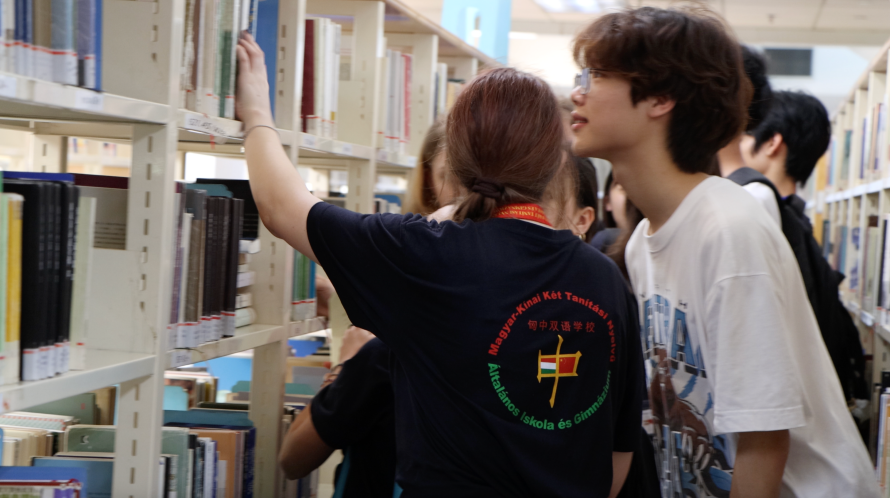 匈中双语学校是中东欧地区第一所同时使用中文和所在国语言教学的公立全日制学校。2023年,国家主席习近平复信匈牙利匈中双语学校学生,鼓励匈牙利青少年做传承发展中匈友好事业的使者。此次匈中双语学校师生到访我校,匈牙利语专业学生担当起一日向导带领匈牙利学生参观校园,欣赏我校的美丽校园景色,感受学校深厚学术底蕴。
