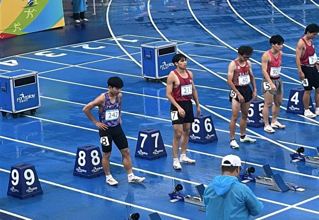 李泽轩在男子100米决赛起跑前