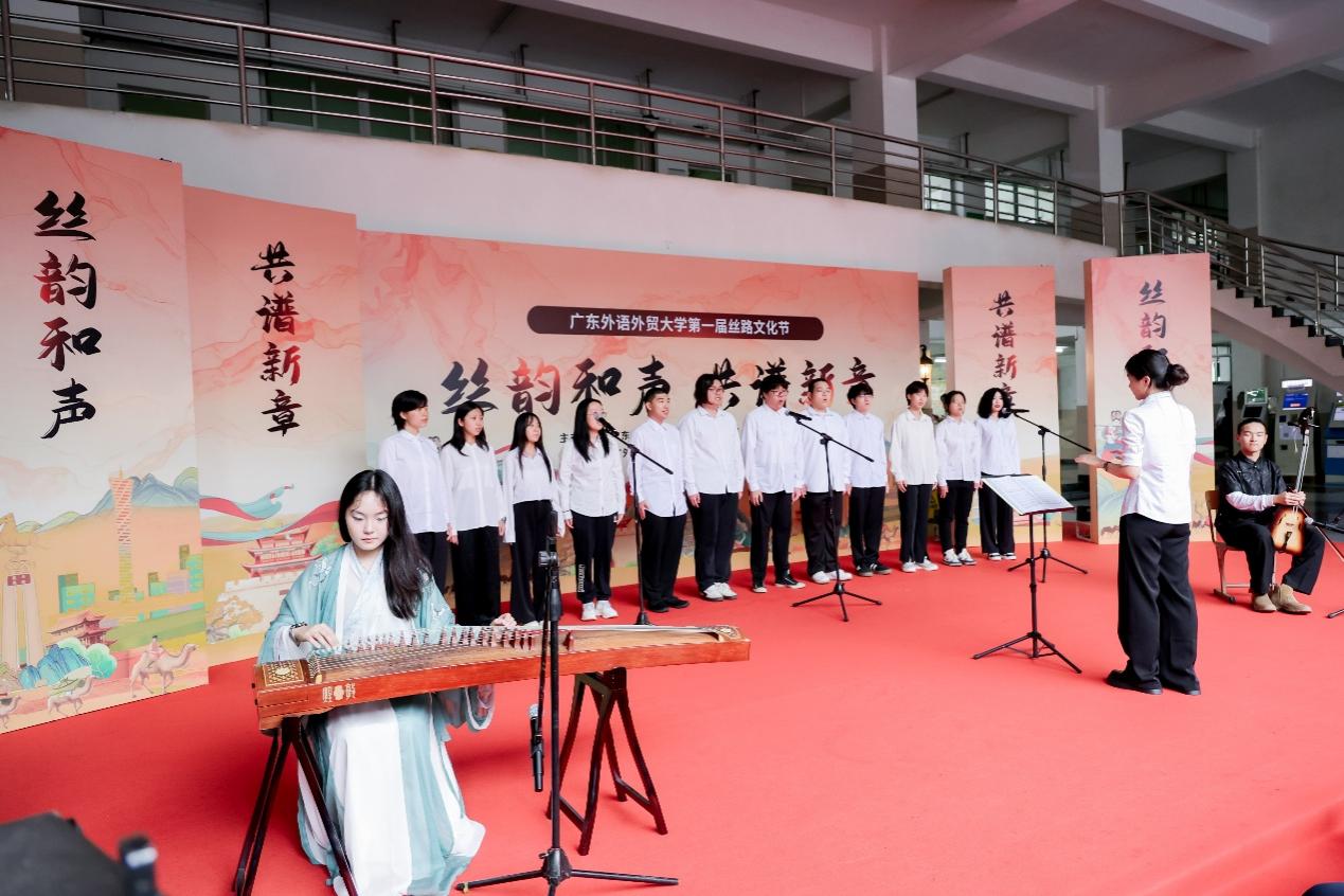 一场精心编排、融合多元文化精髓的文艺演出拉开丝路文化节帷幕。校合唱团与器乐队以创新编曲演绎古老民歌——《越人歌》,悠扬旋律引领观众穿越时空,感受华夏文明的悠远底蕴。