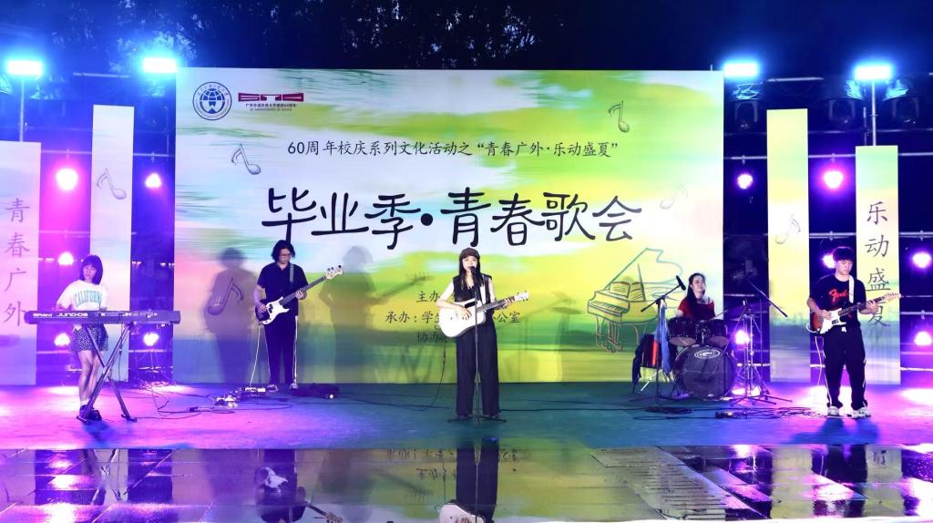 本网讯 为庆祝我校建校60周年,由校团委主办、校学生艺术团办公室承办、校庆办协办的“青春广外·乐动盛夏”毕业季·青春歌会于近日分别在大学城校区下沉广场、白云山校区大操场举办。以青春之名,借音乐之力,为六十华诞献礼,共谱青春华章。