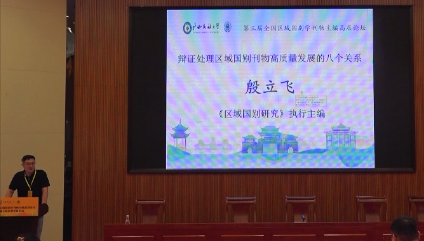 论坛上,殷立飞作了题为《辩证处理区域国别研究集刊高质量发展的八个关系》的主旨发言,提出要在治理结构上,辩证处理好主管单位与主办单位的“协同赋能”关系;在战略定位上,辩证处理好当前突破与长远发展的“阶梯递进”关系;在主题聚焦上,辩证处理好地方特色与国家使命的“动态调焦”关系;在知识传播上,辩证处理好政策应对与理论建构的“互构升维”关系;在传播对象上,辩证处理好学科交叉与学科范畴的“生态共建”关系;在选题导向上,辩证处理好主体意识与他者意义的“角色共生”关系;在风险把控上,辩证处理好稳健运营与创新突破的“动态平衡”关系;在价值引领上,辩证处理好学术自主与对外引介的“螺旋互促”关系。