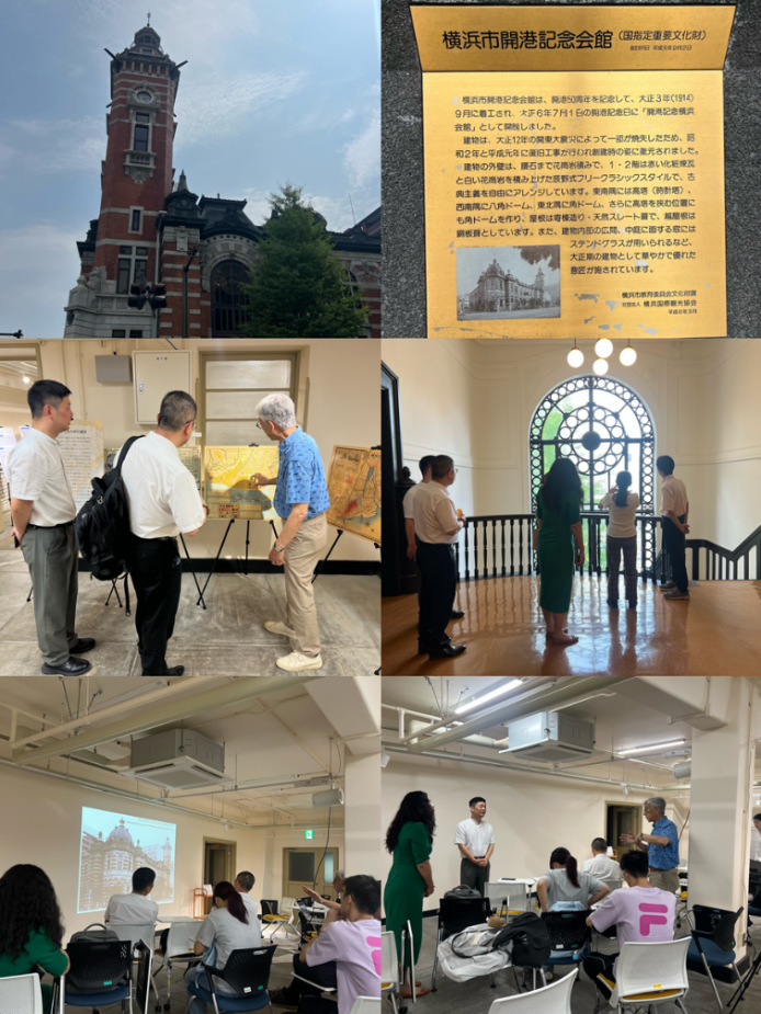 工作坊前往横滨开港纪念会馆,在神奈川大学建筑学院内田青藏教授和姜民采老师接待下,深入了解横滨开港历史背景、建筑特征及修复过程。内田青藏详细讲解横滨整体建筑发展特色,展示开港时期外国人聚集地建筑风格与城市规划,工作坊师生积极互动,探讨城市建筑与规划问题,为区域国别研究中的城市发展板块积累了丰富素材。