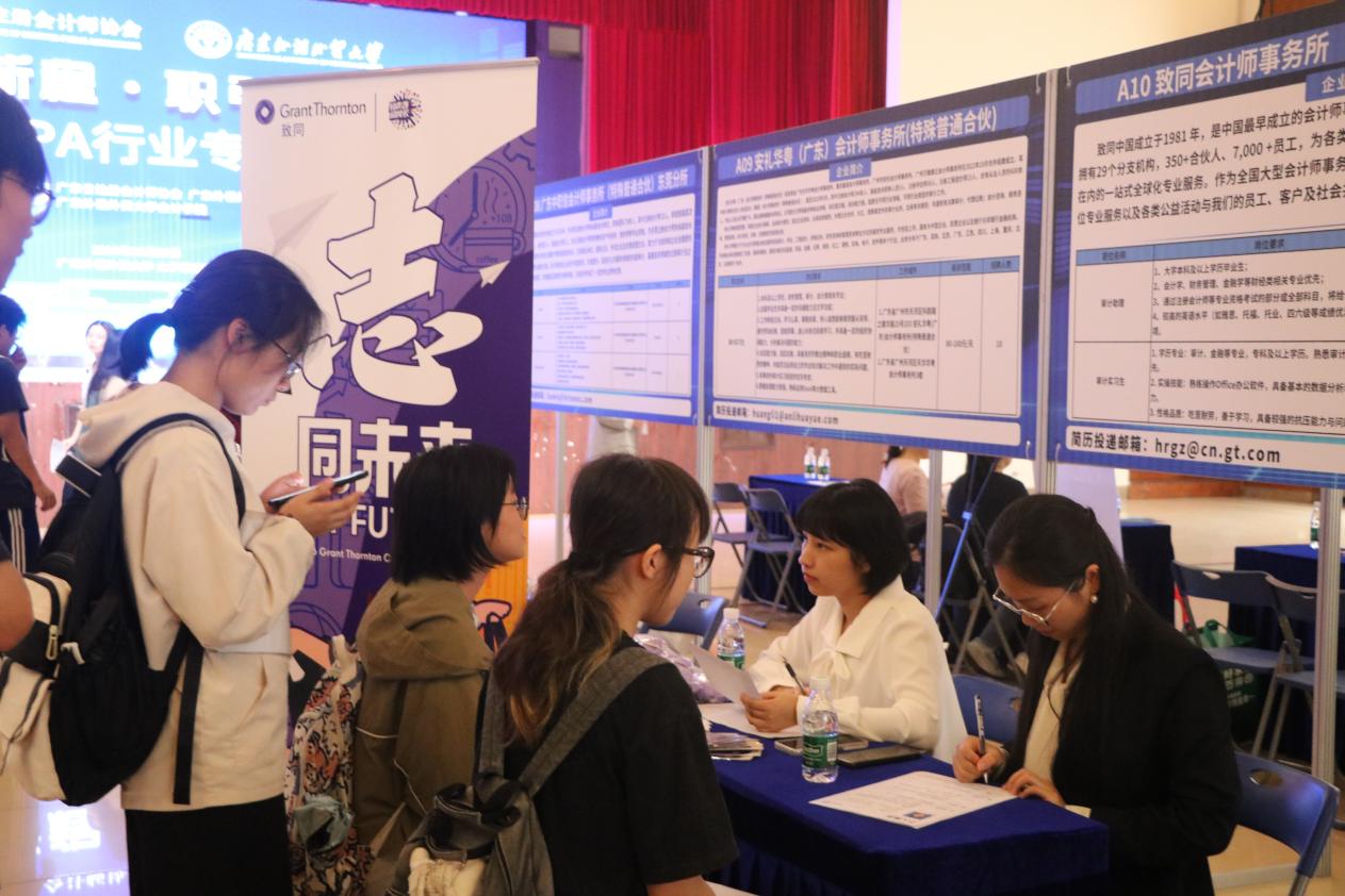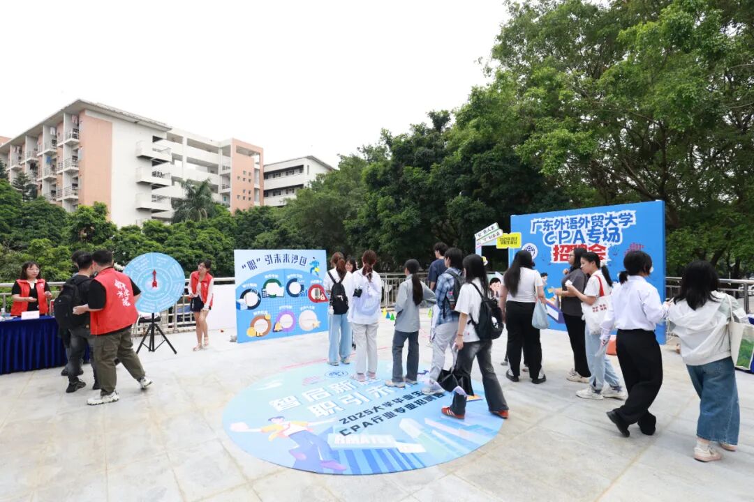 本网讯 10月29日下午,由广东省注册会计师协会与广东外语外贸大学联合主办、会计学院承办的“CPA行业专场招聘会暨会院生涯日”在我校顺利举行。本次活动汇聚24家知名会计师事务所,“线上+线下”招聘平台提供累计超过1500个优质岗位,吸引约800名学生参与,累计接收简历2400余份,初步达成就业与实习意向320人次,为学子搭建起与行业精准对接的桥梁。