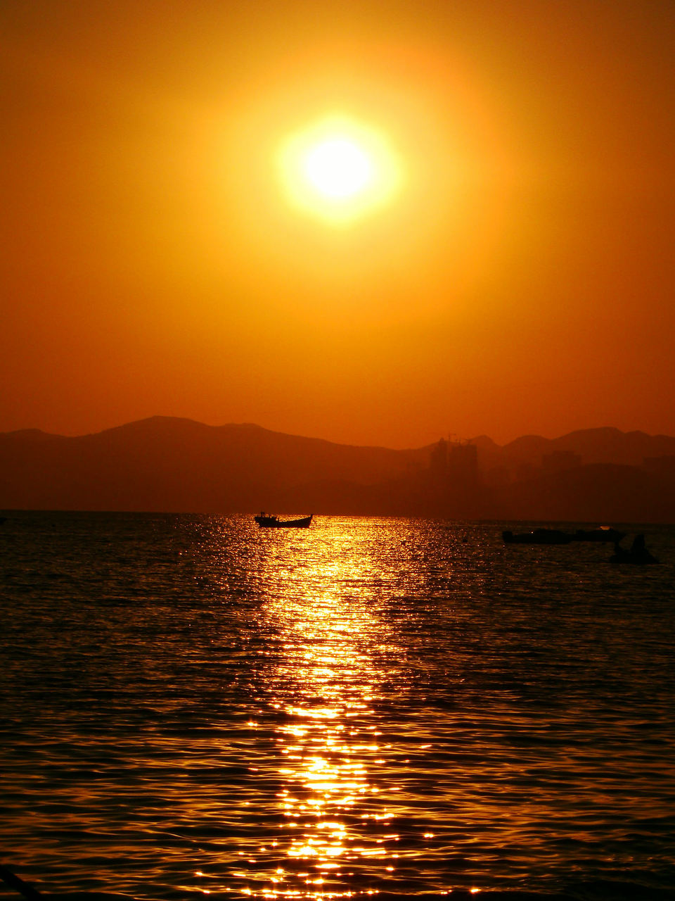放眼望去,那的确是的。在这涩涩的夕照里,在这微微的秋色中,那声音竟也有些涩涩的,微微的感觉了,却与涩微之中又有着甜甜的感觉,我实在没有想过世间会有某种声音能让我在舌尖品尝。站在这秋山上,望着一河的碎金,像极了新婚时新娘花轿上那转动的流苏,于转动中流逝,于明亮中黯然。那碎金子忽的散掉了,流向它的下一个历程,在每条溪径里,那样旋转,那样流动,奔向了那个相同的路口,荡着一个方向的微微涟漪。我们都在这样的河流里飘着远去,到那看不尽的河口,记忆却又嘎然停止了。忽然,风起了来。在我眼里,那水竟倒流起来,色彩也在这一顺一逆间混合着,将秋的心情全部揉碎在夕阳下的波浪中了,于平静中有些许不平静,于不平静中有些许坦然。