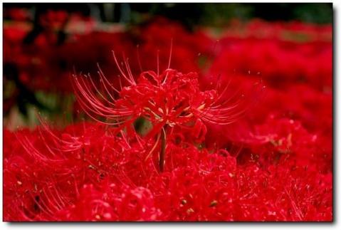 佛教里有一种花叫彼岸花,也叫曼陀罗花,花开彼岸。相传在黄泉路上大批大批的开着这花,远远看上去就像是血所铺成的地毯,是这长长黄泉路上唯一的风景与色彩。信仰应该像这种花,永远抓不到,因为永远彼岸,只有皮囊消殒,脱去一切烦恼之时方能见着。漫漫黄昏下,那一大片一大片的似血的红蔓向天边,于是轮回永生……