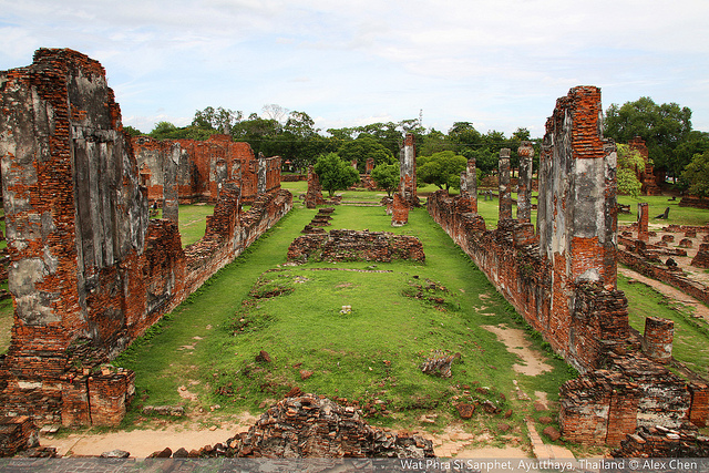 大城(Ayuthaya,อาณาจักรอยุธยา) 一座神圣而沧桑的城市,一座被洗劫的城市。 大城作为1350-1767年暹罗王国的首府,泰语的全称是Phra Nakhon Si Ayuthaya,意思为神圣的大城,素可泰时期被认为是泰国历史的“黄金时代”,而在许多方面,大城时代是这个王朝真正的顶点。暹罗各王朝有33个国王相继统治大城,直至大城被缅甸征服。 1767年,与缅甸发生数次战争之后,大城被缅甸的军队大肆洗劫,大量的黄金宝藏被掠夺,皇室的成员被作为囚犯抓走。而缅甸人并没有在这里建立卫星统治,最终放弃了这座城市,大城的辉煌雄壮的建筑物被大自然和侵略者破坏,留下一片片废墟以及残垣断壁。
