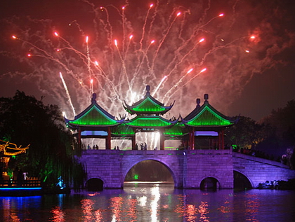 普通老百姓的生活也许一如既往,波澜不惊,上班的上班,买菜的买菜,送孩子上学的送孩子上学,逛街的逛街……这一切的活动里都洋溢着一种说不出的喜悦;官员们则忙于一个接一个的剪彩活动,做一番又一番的致辞,许下一个接一个的诺言,签下一份又一份的合同,引进一笔又一笔的外资;演员们呢,或在东关街上载歌载舞,或伴着龙船在古运河上重现当年乾隆皇帝下江南时的盛况,或在紧张地准备着晚上的晚会;各大餐馆的厨师则在紧锣密鼓地准备各式精美肴馔迎接八方宾朋;手艺人,或是斜倚门栏,不慌不忙地做着手中的活计,一如几千年前的手艺人,光阴在他们的手下老去,游人则沉醉于他们的静默之中,仿佛穿越历史回到过去;茶楼里也许在唱着扬剧,悠扬的唱腔给人一种偷得浮生半日闲的窃喜;道观里的清曲之声更平添一种仙风道骨飘飘欲仙之感,闭上眼,仿若真有游人骑鹤而来……
