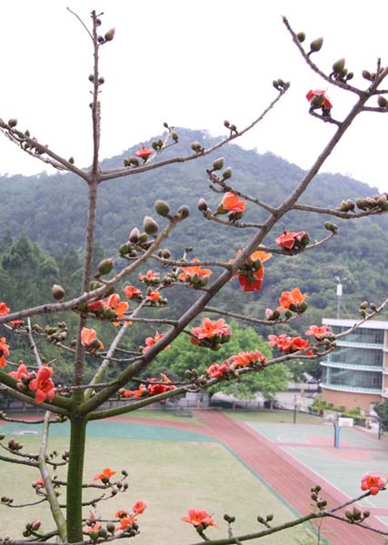 惊蛰已过,春风初度广外,明媚的春光催醒了南粤的木棉。广外附校前楼的三棵木棉树绽然开放,几夜之间争先绽放,广外的天空展露红灿灿的一面,不时向人们捎来春的讯息。