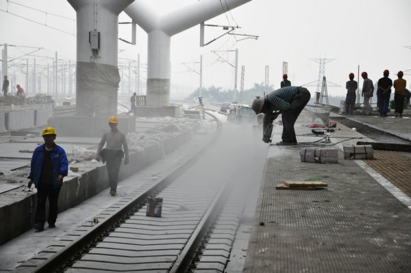 在站台上施工的工人