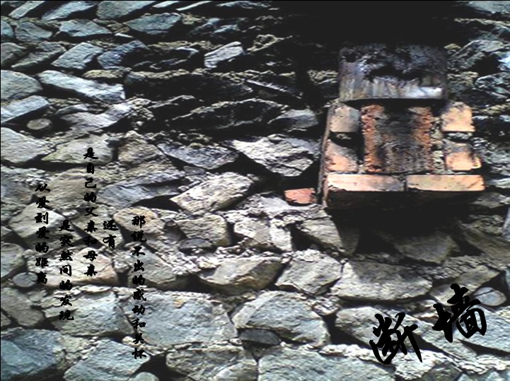 对父亲来说,断墙就是他在家的另一个依靠。每当清晨的第一缕阳光打落到矮小的墙上,那似乎是在迎接父亲疲惫的从田地里归来,带着一身分不清是汗水还是露水的衣裳,在风中瑟瑟飘动。父亲依旧坐在那里抽着烟,清扫着那双沾满泥土的草鞋,就这样,静静的,静静的……他在期待什么呢?他显得那么的孤独。难道他那小小期待就只为我们这些作为儿女的一句话吗?然而,我们还是没有说出来。说不出来,为甚?心中有点苦。