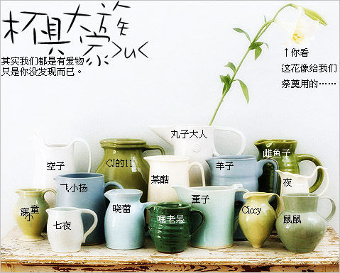 人生是一只茶几,上面放满了杯具。而本身就是杯具的我们还非加上茶叶自以为与别人没有茶具(差距),结果人人都说咱现在要具就用餐具(惨剧)。我们在沉默中灭亡,成了文具;在沉默中爆发,成了火炬。我们想明哲保身,都成了面具。我们想一鸣惊人,都成了京剧。不能再次相聚,执手相看泪眼,成了默剧。生活是自己的杯具,别人眼里的洗具(喜剧)。