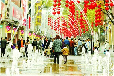 如果说大红灯笼是张扬的北京路,那么千年古道遗址则是内敛的北京路。大红灯笼哪里都可以挂,但千年古道却不是哪里都有的。千年古道是北京路的另一道独一无二的风景线。在道路中间,透过透明玻璃,我们可以看到几米乃至十几米之下的古栈道。灰黑的鹅卵石,粼粼的石层,长方形的石板,坑坑洼洼,高低不平,貌似一个古朴的废墟,但旁边绘有“南宋门楼”、“宋元路面”等标志俨然告诉我们,这不是废墟,这里曾是繁华,是绚丽,是喧嚣,一如如今栈道之上的。既繁华,又荒凉,既喧嚣,又孤独,这就是历史。