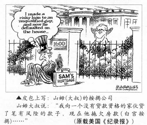 问题是,在这个关节上美国人开始造假。就是把手头的房子价格高估,用来抵押另外的房产,按揭连环套,让很多美国人当然也包括贝琳本人当上了真正的“资本家”。