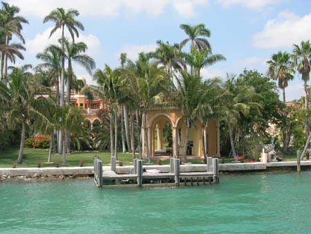 ( 迈阿密沿岸小岛上是富翁的住地,每座豪宅价值数千万美元,甚至上亿美元。影星、球星的住宅随处可寻。)