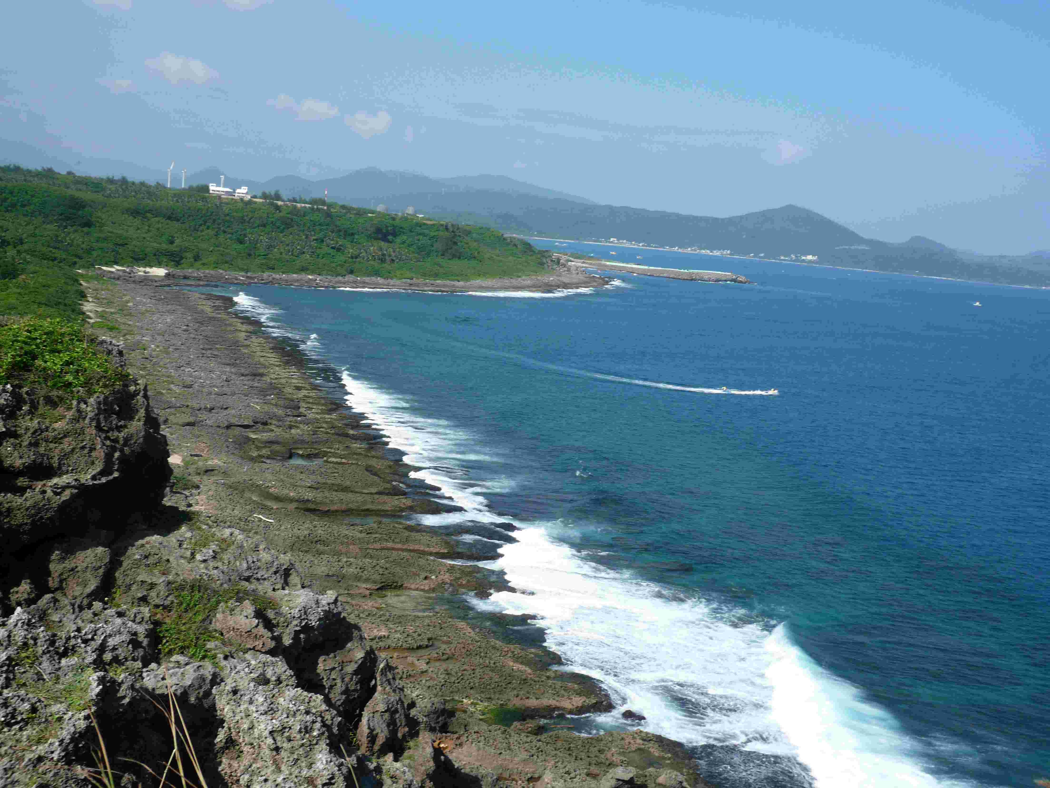 天一破晓,垦丁又恢复了它白天的模样,大街上随处可见穿着沙滩裤和人字拖的游客,大家或是开私家车,或是骑机车,亦或者是踩脚踏车,不紧不慢地驶向各自的方向。我选择先去垦丁森林公园,然后南行至猫头鼻。可别小看了这猫头鼻,它可是台湾海峡和巴士海峡的交接点,和鹅銮鼻互相遥望。在返校的途中,我又顺道去了白砂,《海角七号》最后一场戏中“留下来或我跟你走”这一幕就是在这儿拍摄的。