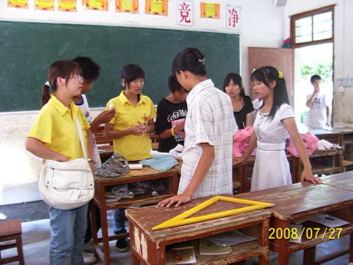 一直在追问自己去黄花的目的是什么,带了什么给那些孩子们。觉得自己其实也许是很自私的,因为打扰了别人原本平静的生活。我们短暂地停留了一阵,然后离开。有没有想过别人生活遭受的落差?这就好像一个人平时喝惯了粥,突然间让他吃上大鱼大肉的盛宴,然后又让他重新喝粥。这是一种残酷,这是一种悲哀。短短的半个月,我究竟能给他们带来什么?我越思考越迷茫,这样的结果就是三下乡想达到的效果吗?清风在耳边轻轻的吹过,蟋蟀的声音在身边唧唧地叫。这时候,有人告诉我,其实你也是那个喝粥人,你带来的是你的爱和知识,在欢乐中展示当代大学生的风采,引导学生积极发奋。你给学生带来的大餐其实在他们看来是一种幸福,既然你能给别人带来幸福,所以别人也同样带给你幸福。
