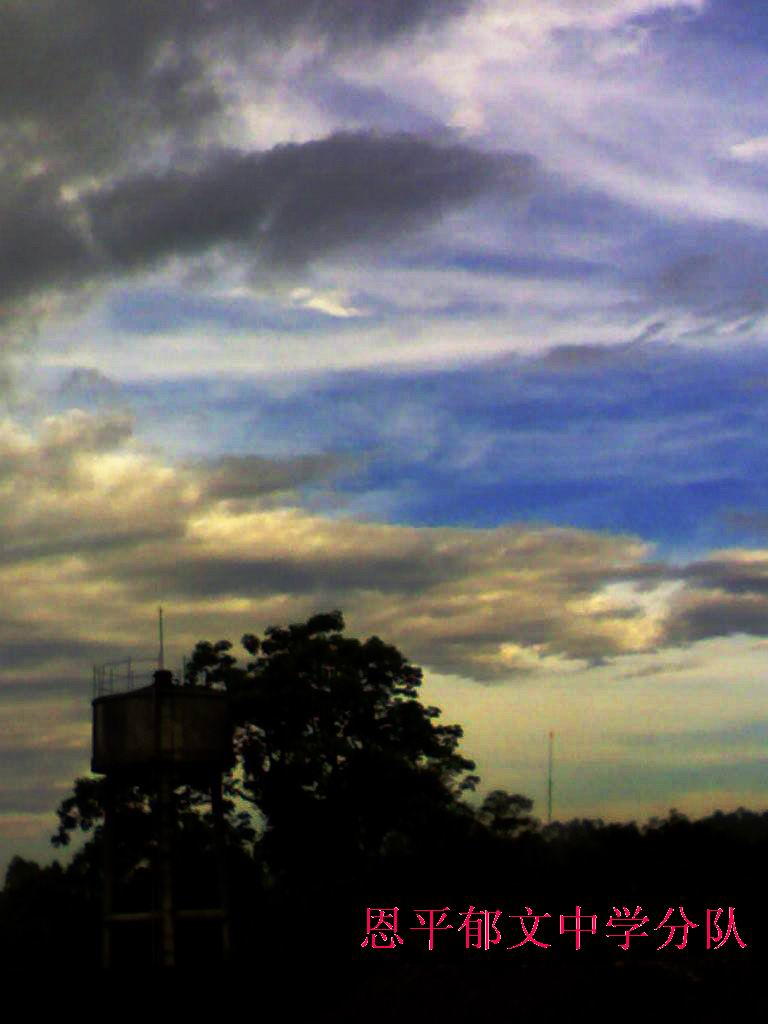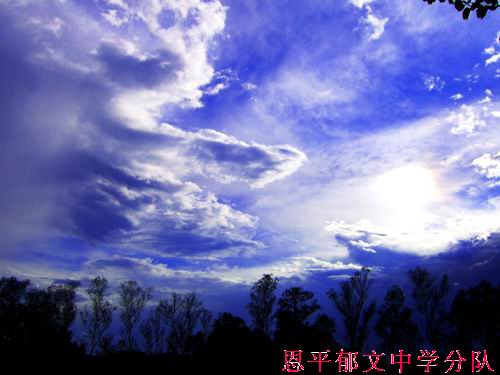 在郁文中学,美景俯首可拾,其中看变幻莫测,时舒时卷的白云就是我们在紧张的教学中的一大乐趣,这片天空,绝对不是去留无意,不久,我们将轻轻地离开,不能带走一片云彩,但我们会永远刻下这片云彩,在心里……