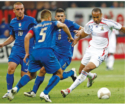 亨利!你曾经就是胜利的代言人,你即使用一把钝铅笔刀也能将敌人肢解。胜利的微笑总离不开你的嘴角,而这一刻,你还在微笑吗?你似乎在怀念着谁。是谁?齐达内!肯定是他!