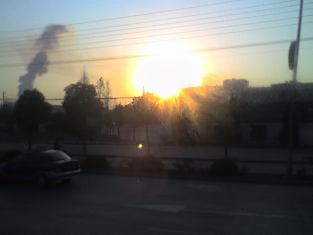 这是2006年8月18日,我即将离开家,离开那个熟悉的城市,离开我的亲爱的亲爱...的时候,散步于那熟悉的道路上时,偶然邂逅的--灿烂的夕阳!