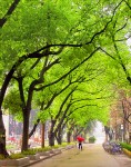 每天的早晨,或许不常有鸟语花香,但这里一片与生俱来的生机是不会缺少的。此处人们往来如织似网,同时聚集在着幽长辗转的小道上。不知道,沿着这路的小树,踏着平坦的路,品尝着清晨含者露水雾气的空气,该有多么地轻松和满足?想想,路由谁而铺,树由谁而栽?空气从何而来?如果没有这些,我们的眼睛、鼻子,我们的脚步怎么能如此布满色泽,散发清香,自在悠扬?我们应该满足这和美详腻的轻松。古人说“一日之计在于晨”,其意大概于此吧。