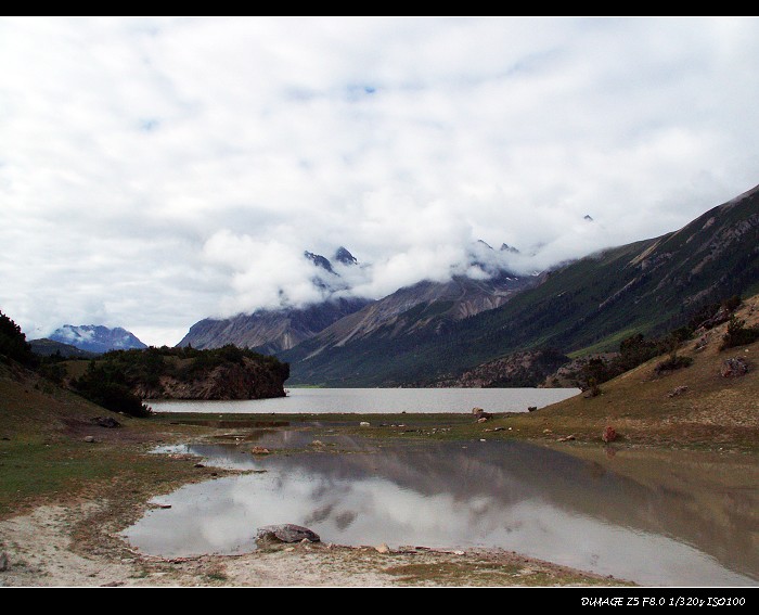 然乌湖最美的季节是冬天,那时候湖面是蓝色的,冰川环绕,如入仙境。然而并非所有人都受得了高原的严寒,所以一般游客总是夏天来到这里,这个时候由于雨季刚过,湖水浑浊,美丽打折,如同下面两张照片。
