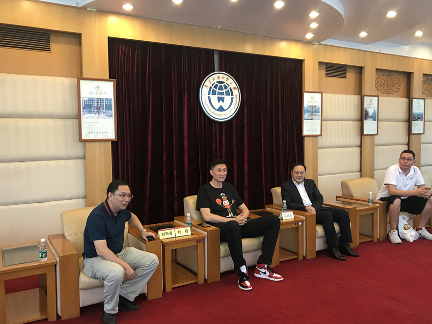本网讯 10月15日,广东宏远篮球俱乐部主教练、广东省青年联合会副主席杜锋以“心有多远,就能走多远”为主题,在北校区六教报告厅向学生分享了自己的成长历程,阐述了体育精神。活动开始前,杜锋受聘为我校客座教授仪式在北校区迎宾厅举行。我校校长石佑启,副校长刘海春,校团委书记苏奕、人事处处长谢文新,体育部主任林少娜、体育部党总支书记李旭武等参加。