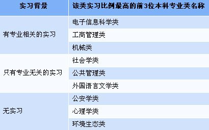 注:“有专业相关的实习”包括“只有专业相关的实习”和“既有专业相关,也有专业无关的实习”。