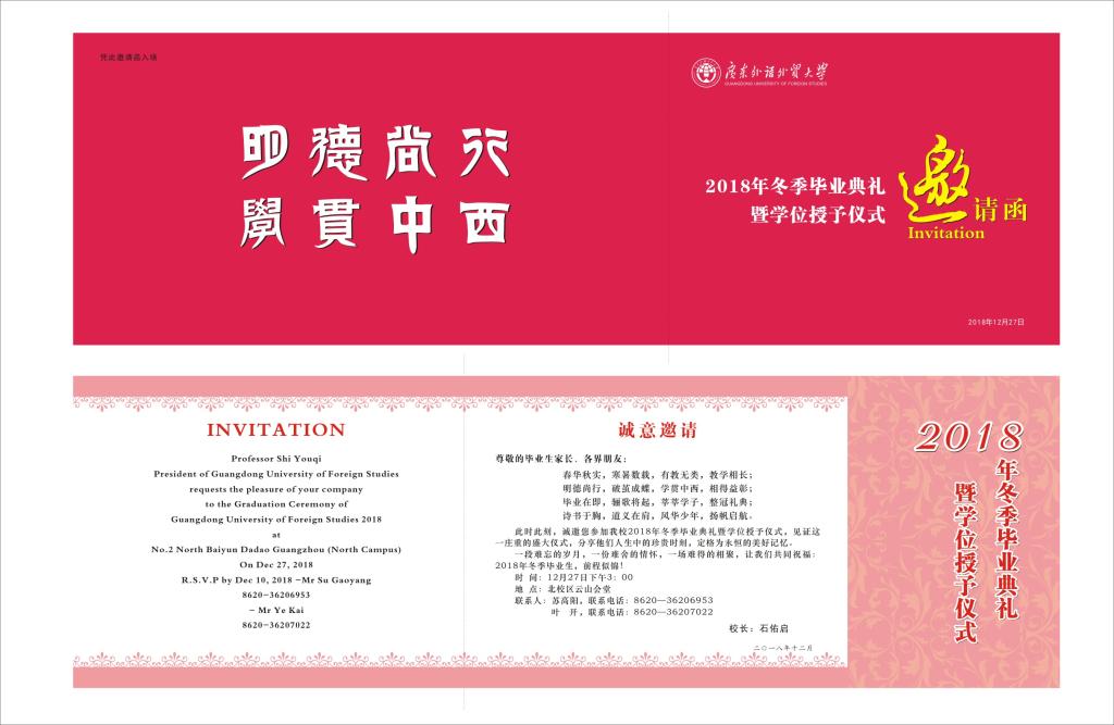 四、诚邀毕业生的父母、亲友观礼,观礼亲友凭学校统一制作的邀请函入场,在指定位置就坐。因座位有限,每人限领一张邀请函,请于12月13日前到各学院(中心)登记。