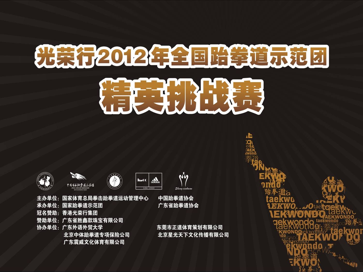 “光荣行”杯首届全国跆拳道示范团精英挑战赛即将于2012年3月3日—4日在广东外语外贸大学大学城校区大会堂激情上演。本次比赛汇聚了来自全国22个省市跆拳道精英团队进行巅峰对决。其中武打影星李连杰的师父吴彬先生、跆拳道奥运会冠军陈中以及世界吉尼斯后空翻记录创造者,中国跆拳道特技王罗秋生作为本次赛事的明星评委嘉宾。全新的赛事、全新的视觉享受、与明星嘉宾近距离接触的机会,你还等什么?共同期待“光荣行”杯首届全国跆拳道示范团精英挑战赛!