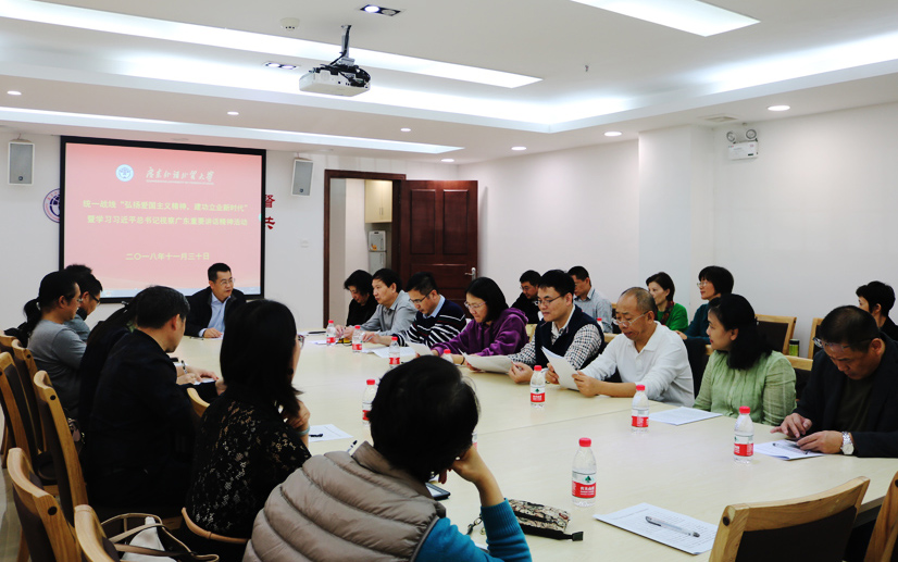 本网讯 11月30日下午,我校各级人大代表、政协委员,以及各民主党派、侨联会、欧美同学会、知联会骨干在统战工作室举行“弘扬爱国奋斗精神,建功立业新时代”暨学习习近平总书记视察广东重要讲话精神学习会。会议由党委组织部、统战部部长方迎生主持。