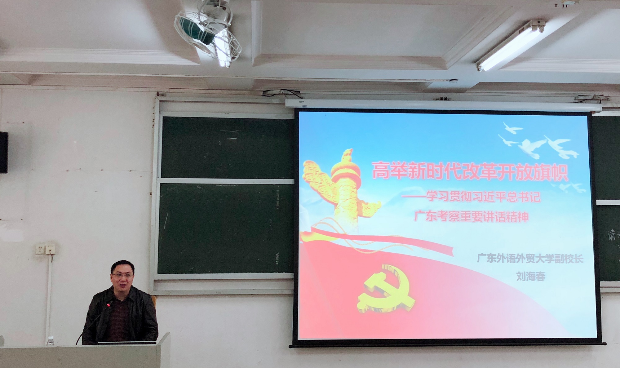 本网讯 为深入学习贯彻习近平总书记视察广东重要讲话精神,感受改革开放40周年伟大成果,进一步培养学生骨干的全局视野和时代触觉,1月14日上午,校党委常委、副校长刘海春教授为校第八、九期青马班学员、校院级学生骨干进行了“学习贯彻习近平总书记视察广东重要讲话精神”专题培训。