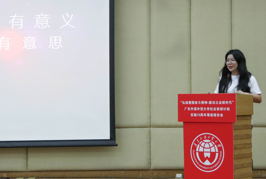 报告会上,刘海春介绍了西部计划的基本情况。今年正值国家开展大学生西部计划志愿活动15周年,校团委借此契机邀请了我校西部计划以及研究生志愿团的四位成员代表作为本次大会的报告嘉宾,向我校学子作先进事迹报告。他表示,自2003年派出第一批西部计划志愿者和2014年派出的第一个研究生志愿团,我校迄今已有81名志愿者为国家西部事业发展作出贡献。