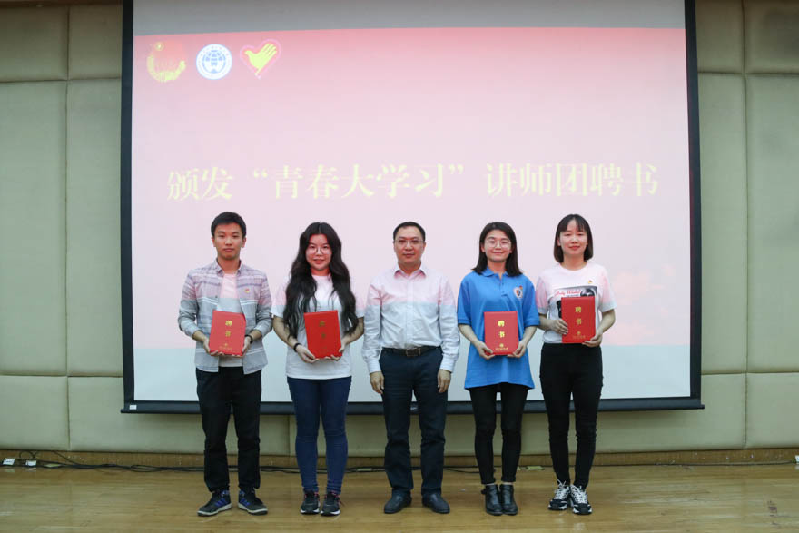 本网讯 为深入学习贯彻习近平总书记关于弘扬爱国奉献精神的一系列重要讲话内容,弘扬我校志愿者“奉献、专业、包容、友爱、坚韧、进取”的精神,12月5日下午,纪念西部计划实施15周年事迹报告会于北校区图书馆报告厅举行。冯卓怡、邵书琴、刘何琳、陈卓佳4名参加“西部计划”的优秀志愿者分享了自己奉献西部、服务基层的青春故事和个人感悟,并受聘为我校“青年大学习”讲师团成员。会前,我校党委书记隋广军,校党委常委、副校长刘海春在北校区贵宾厅接见了四位优秀志愿者。