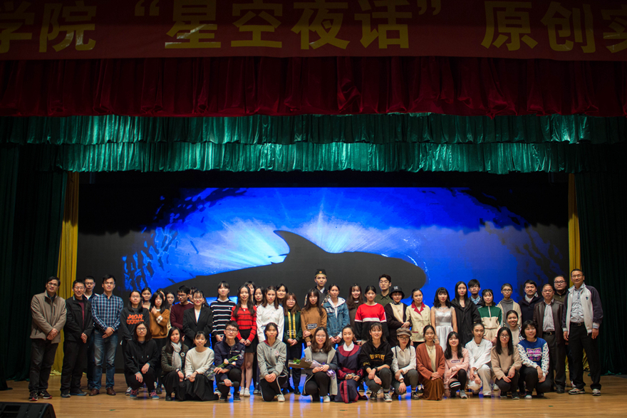 本网讯 12月9日晚,我校凤鸣云山剧社今年全新推出的活动“星空夜话”原创实验剧场在六教报告厅上演,这是我校党委推出的“铸魂·系扣”工程的系列活动之一。剧场以“赤子之心”为题,每一幕均为剧社新人自编自导自演,以复杂的社会环境作为创作背景,展现了怀着赤子之心的他们对世界的独特看法。