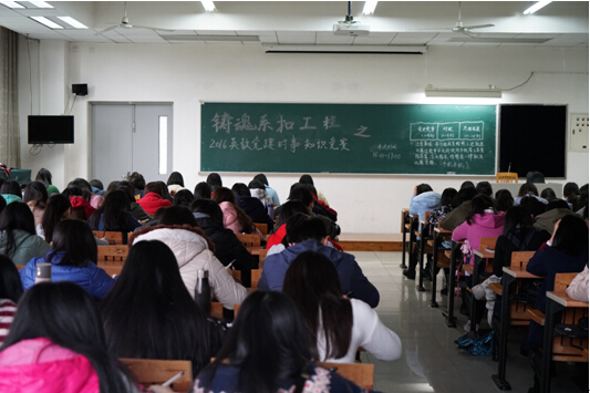 3月28日,英语教育学院对入党积极分子讲授“学习社会主义核心价值观”的专题党课。活动组织观看了2015年度感动中国人物的颁奖典礼,并邀请了2013级优秀学生郑欣现场分享经验。学生们纷纷表示:“榜样的力量很强大,我们应该在心中树立一个榜样,作为鞭策我们前进的动力,更好地践行社会主义核心价值观。”