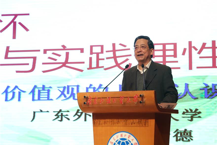 於贤德围绕“家国情怀与实践理性”,分享了他对中华价值观的几点认识。他认为,“悠久的历史传统”“显著的社会取向”以及“强烈的实践理性”是中华价值观的三个重要特点。谈及历史传统,他说,中华文明几千年不间断,多元的民族文化与经济结构,对价值观念的形成有重要影响。他以“关羽”为例指出,中国人的价值追求在于个体归于群体的作用与贡献以及家国情怀的践行。他还认为中国人对价值观的理解,主要体现在一个“值”字上,并且通过观念指导实践,实现价值追求。同时,他认为,“中外价值观的区别就在于个人价值的自我实现途径和价值实现方法的不同,而这种差异又与经济文化发展水平和社会制度密切相关。”中国社会主义核心价值观继承了中华优秀传统文化的精华,吸收了世界各国的先进内容,形成了符合中国特色社会主义建设和中华民族伟大复兴必然要求的价值观念体系。