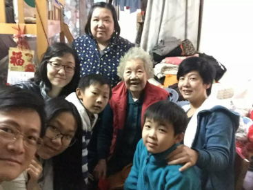 志愿者和受访家庭合影
