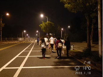 首批担任工作人员的学生志愿者从学校出发