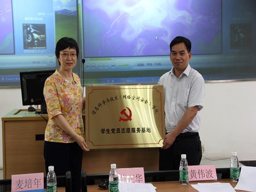 本网讯 5月11日下午,信息科学与技术(网络空间安全)学院学生党员志愿服务基地揭牌仪式在实验楼B107举行。教育技术中心党总支书记范正华、信息科学与技术学院党委副书记麦培年,教育技术中心、信息科学与技术学院相关老师以及非毕业班党员、发展对象、入党积极分子以及学生党建工作人员共130多人出席。