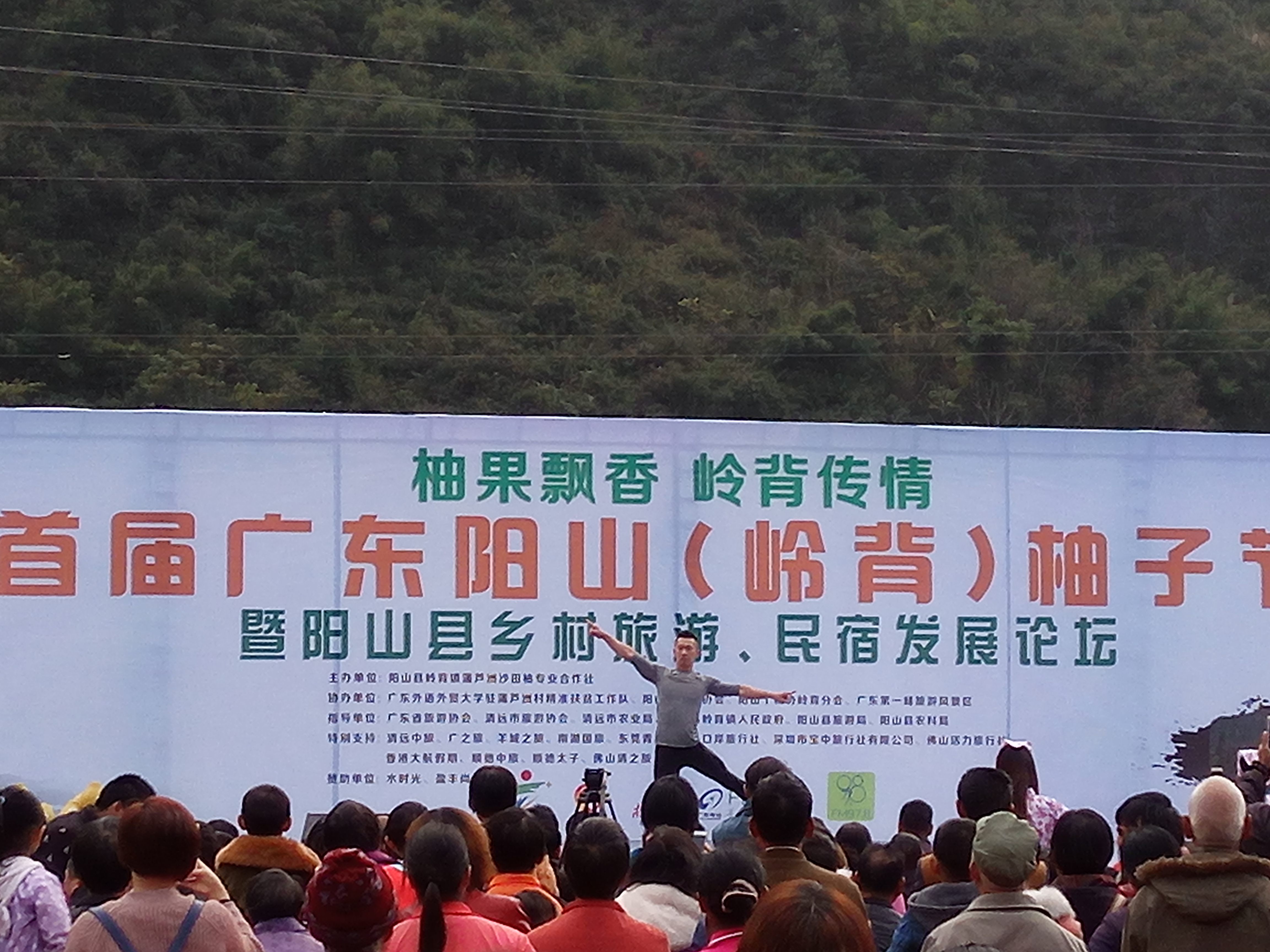 第二天,首届广东阳山(岭背)柚子节开幕式暨阳山县乡村旅游、民宿发展论坛开幕,由我校体育部黎良发老师带来的健美操表演和刘珺老师带来的武术表演两个节目赢得了广泛好评。