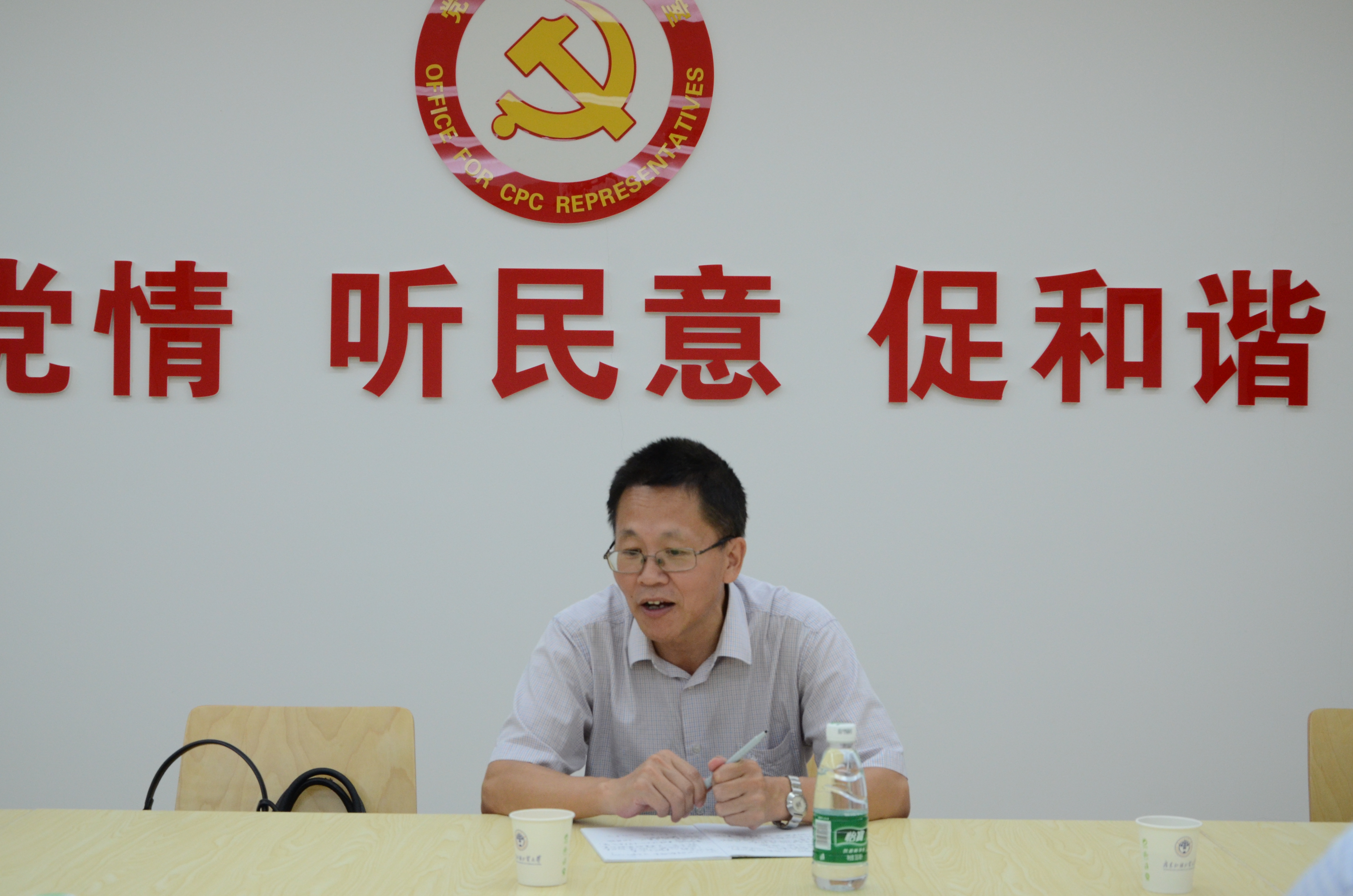 本网讯 7月16日,全省“两学一做”学习教育党课巡回宣讲团讲师、我校马克思主义学院院长谢迪斌在学校党代表工作室为机关党委学生就业指导中心党支部上了一堂主题为“合格党员的三个标准”的党课。会议由党委组织部正处级组织员、机关党委书记王秀民主持,参加本次学习活动的有学生就业指导中心党支部全体党员。