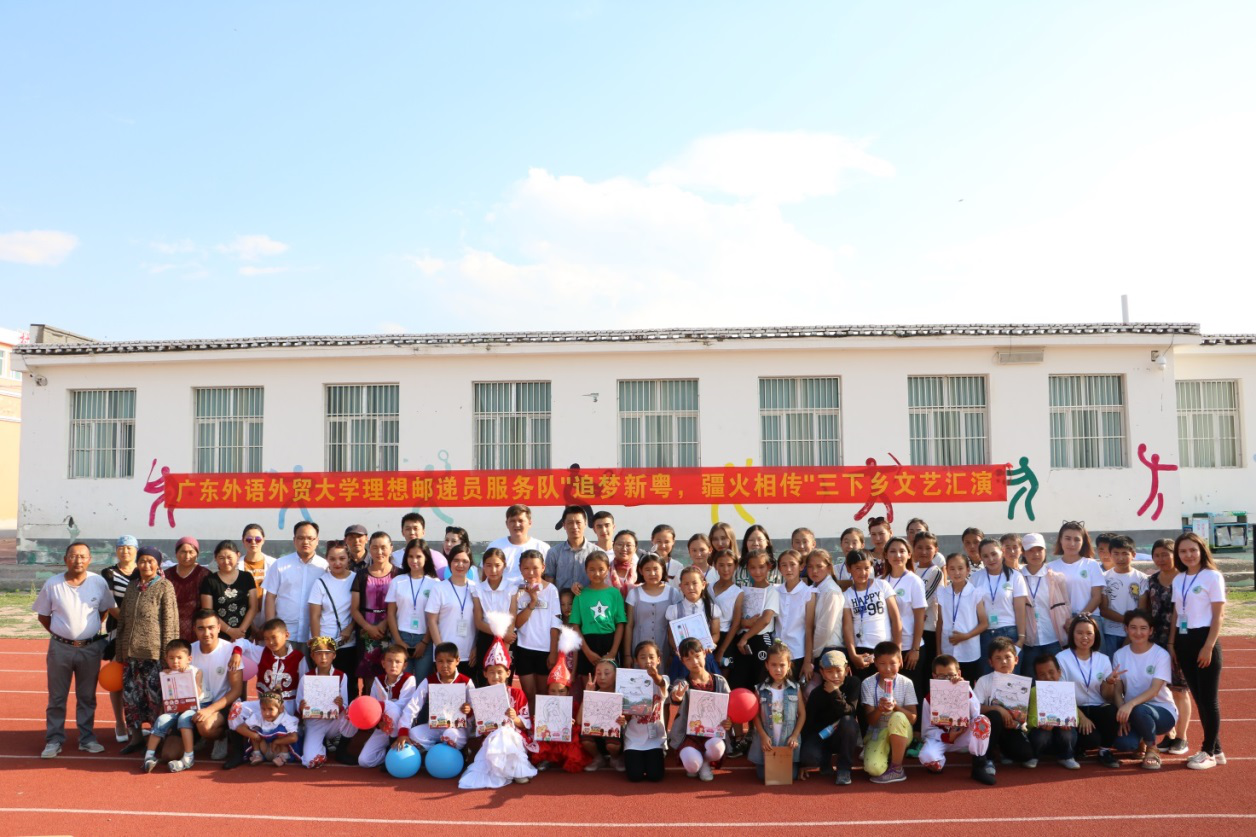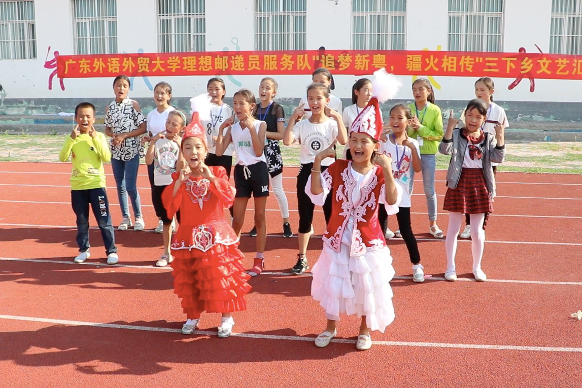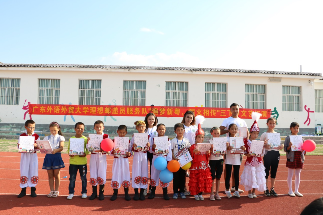 下午,“理想邮递员”服务队“追梦新粤,疆火相传”三下乡文艺汇报演出在新疆塔城地区裕民县阿勒腾也木勒乡牧业中心校精彩上演。阿乡中心校党委书记哈德列提·伙依别克、我校新疆家访小组全体成员以及当地学生家长观看了此次汇演。