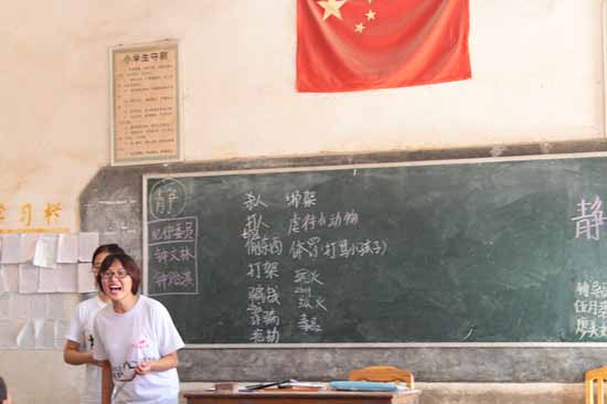 几节课下来,队员们普遍反映,学生们的学习能力很强。在由一二年级组成的一班教英语的队员廖紫蕾,在短短一节课内把26个字母都教完了,“感觉进度太快了”。负责三班教学的罗阳仅用两分钟就将七大洲和四大洋介绍完毕,同学们都记得很清楚。