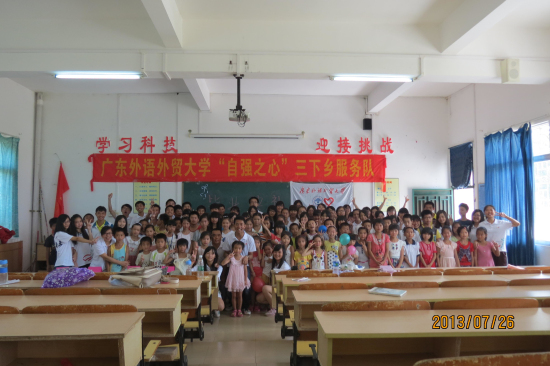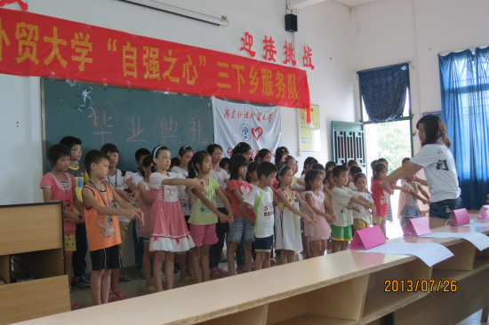 上午9时,文娱组队员火辣的开场舞拉开了毕业典礼的序幕。毕建永在致辞时高度赞扬了“自强之心”服务队不畏艰苦的精神并鼓励孩子们努力学习,走出大山。而麦素洁则对全体队员10天来对学校和学生们的付出表示衷心感谢,并鼓励学生和队员们保持联系。队长则深情地说:“三下乡的种种,就像一颗种子,共同植入我们每一位队员和每一个孩子的心中,我们也坚信,只要我们小心灌溉,这颗种子早晚会发芽,茁壮成长!”