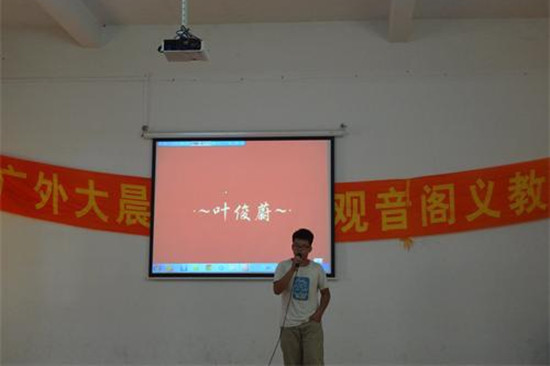 本网讯 7月27日下午,由英语教育学院举办的第一届“观中好声音”决赛在观音阁镇中学小礼堂如火如荼地拉开了帷幕。在历经一周的紧张准备之后,共有9位参赛选手及组合进入决赛,决赛评委由四位导师及所有晨曦队音乐老师担任。最终,吴惠宁荣获冠军,王蓓、黄惠珊组合,吴梅贵、黄玉如组合并列第二,黄如清、郑嘉媚组合获三等奖。