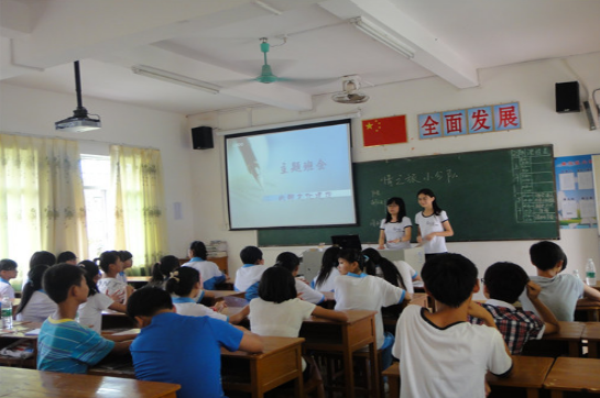 本网讯 7月17日,在经贸学院“情之程”党员队伍来到韶关曲江的第二天,队员们迎来了活泼可爱的大塘中学的同学,三下乡之旅正式启航。